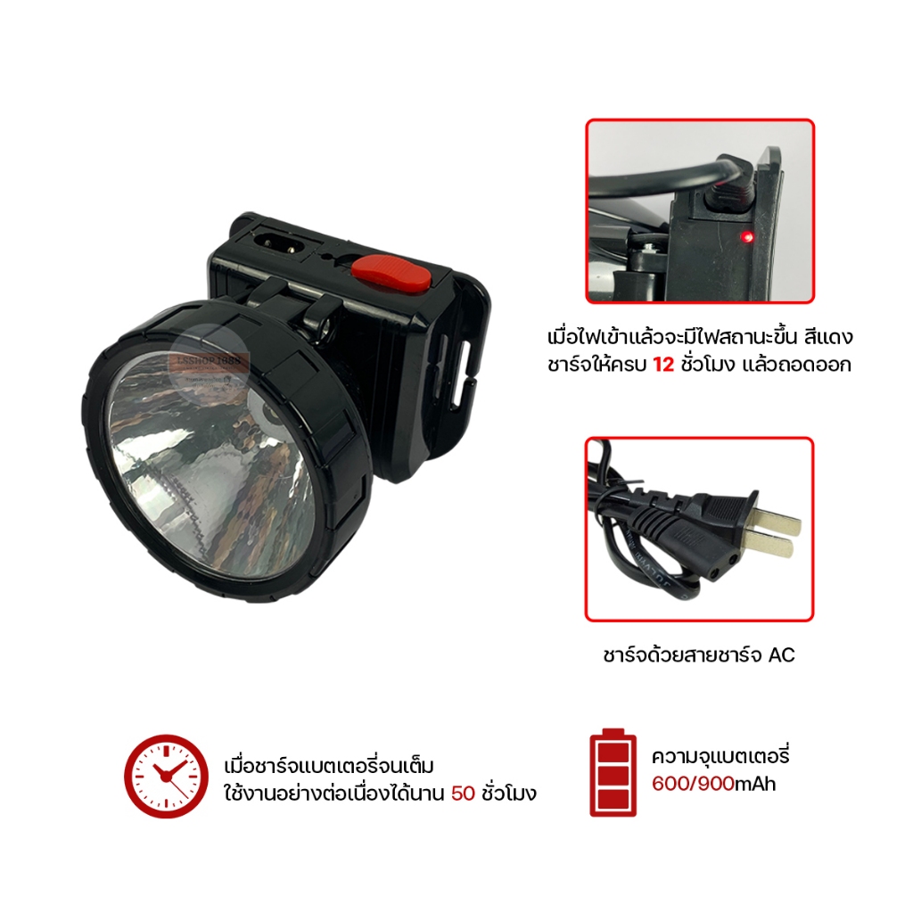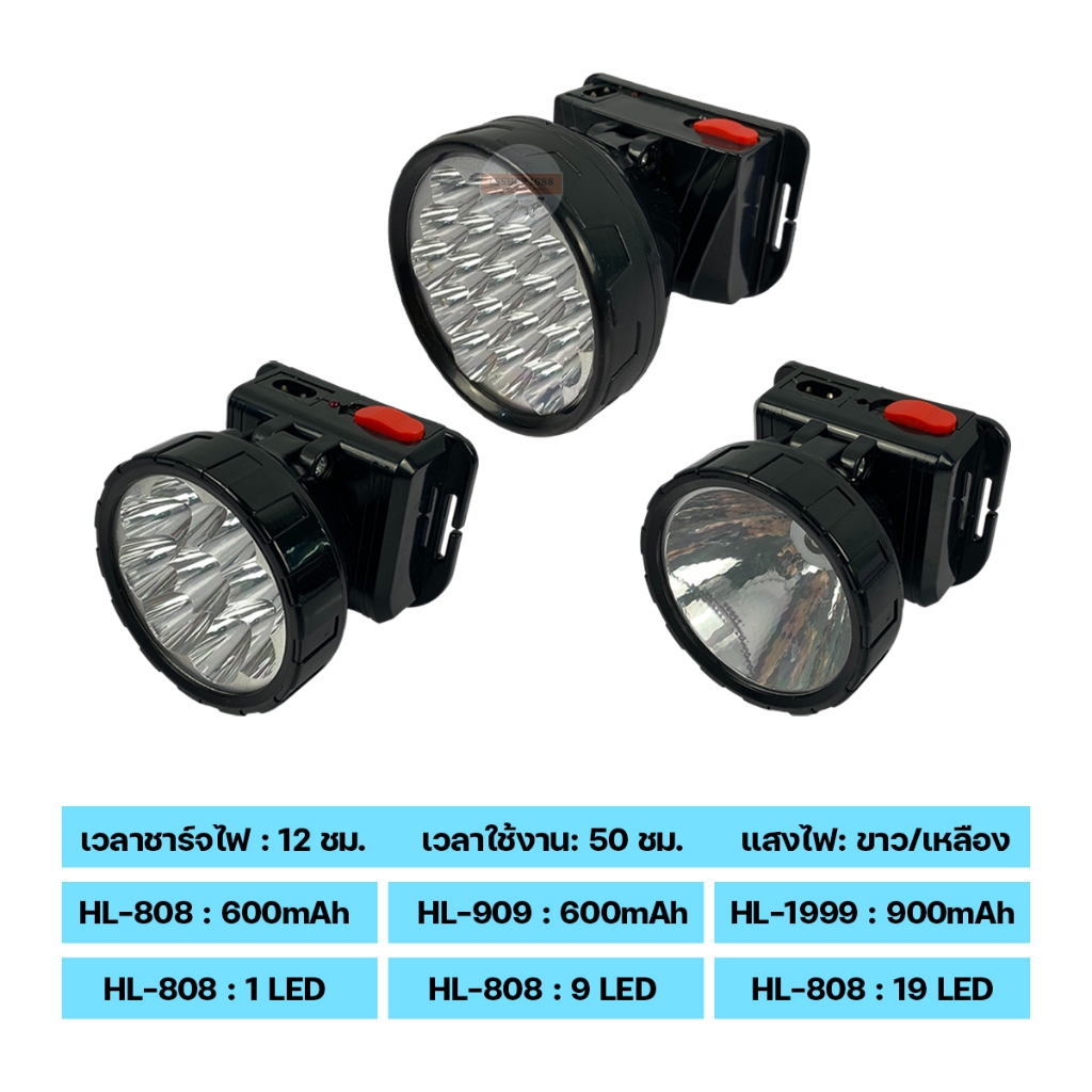 ราคาพิเศษ!!! ถูกมาก ไฟคาดหัว LED ไฟฉายคาดหัว แบบชาร์จแบต 2สีใน1ตัว ยี่ห้อHLX รุ่น HL-808/909/1999