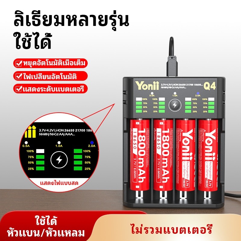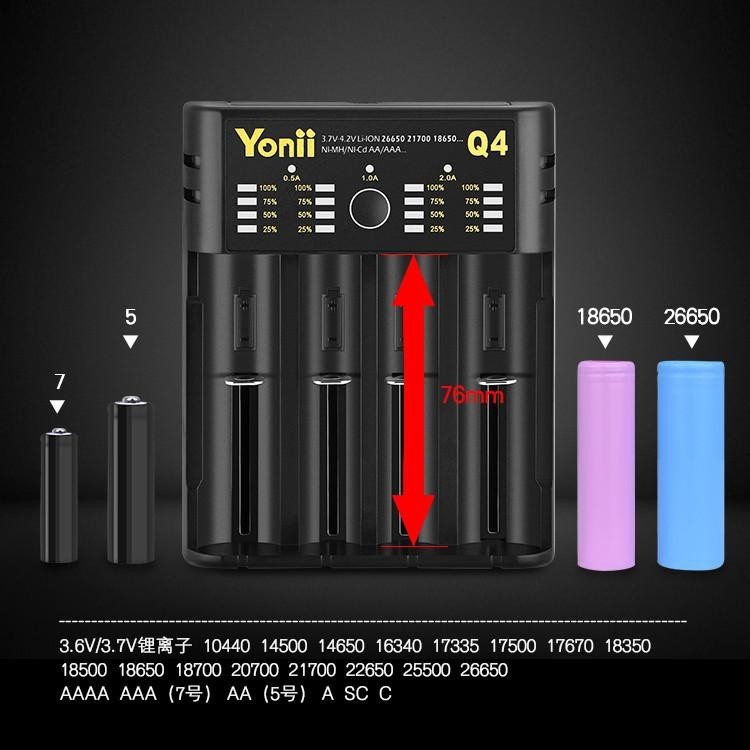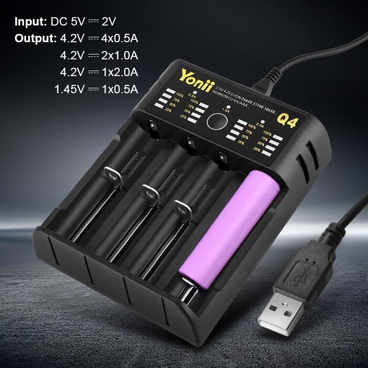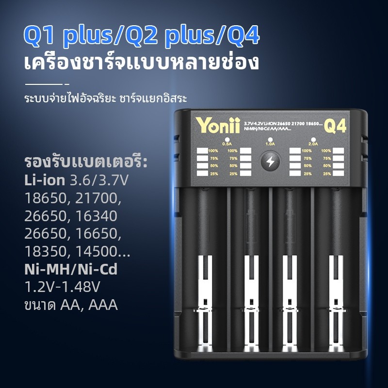 Yonii Q1/Q2/Q4 เครื่องชาร์จแบตเตอรี่ลิเธียมไอออน 3.7V และ เครื่องชาร์จแบตเตอรี่ Ni-MH 1.2V 2A/3A
