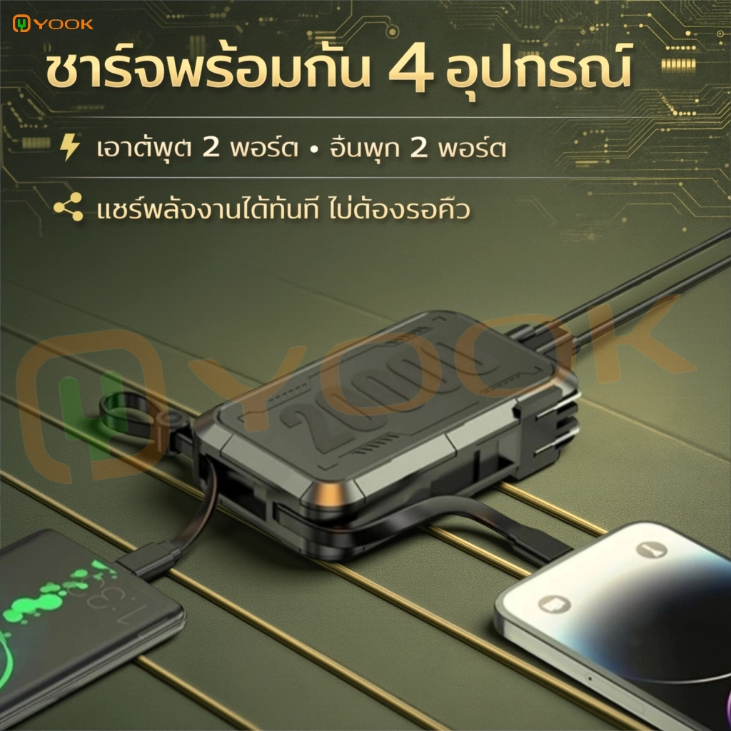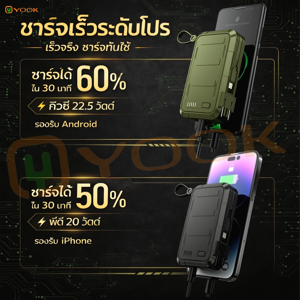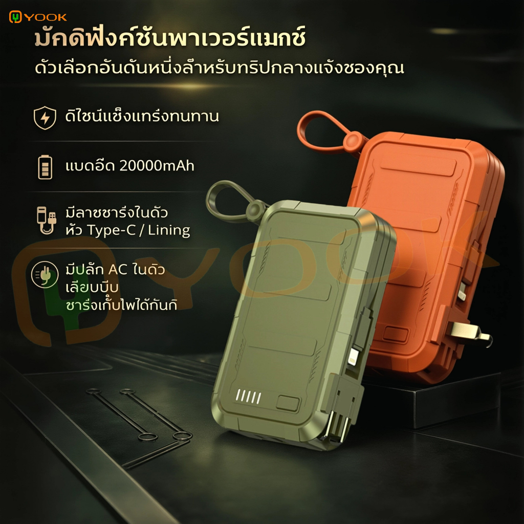YOOK Powerbank Fast Charge พาวเวอร์แบงค์ 20000mAh พาวเวอร์แบงค์ชาร์จเร็ว PD22.5W ถอดสายชาร์จไฟ LED Display