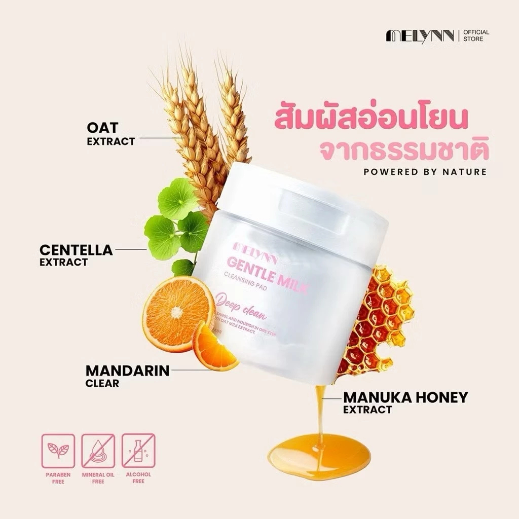 (กระปุก) MELYNN Gentle Milk Cleansing Pad มีลีนณ์ เจนเทิล มิลค์ คลีนซิ่ง แพด โทนเนอร์แพด 60 แผ่น