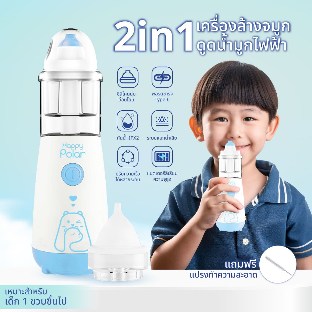 Happy Polar เครื่องล้างจมูกไฟฟ้า เครื่องดูดน้ำมูก 2in1 ล้างจมูก + ดูดน้ำมูกในเครื่องเดียว เหมาะสำหรับทั้งเด็ก ผู้ใหญ่