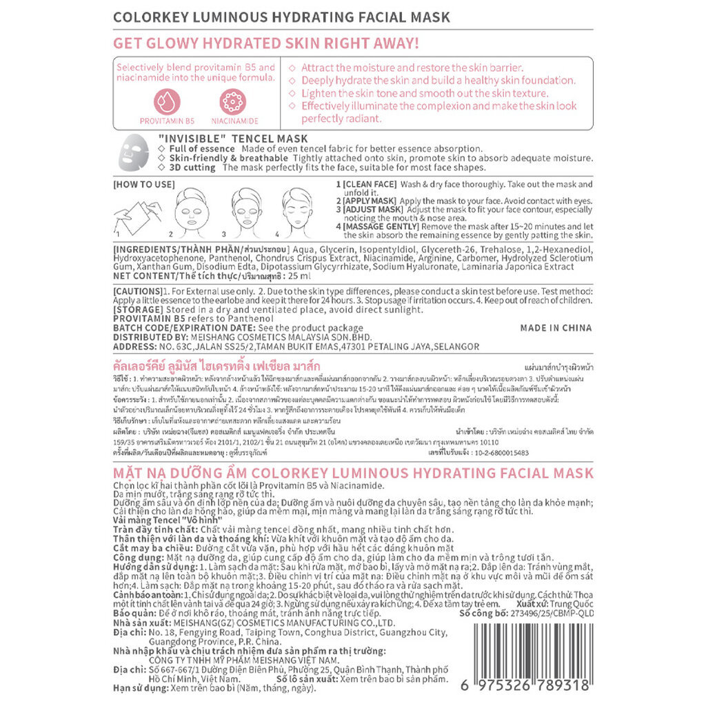 Colorkey คัลเลอร์คีย์ ลูมินัส ไฮเดรทติ้ง เฟเชียล มาส์ก 25 มล. 1ชิ้น
