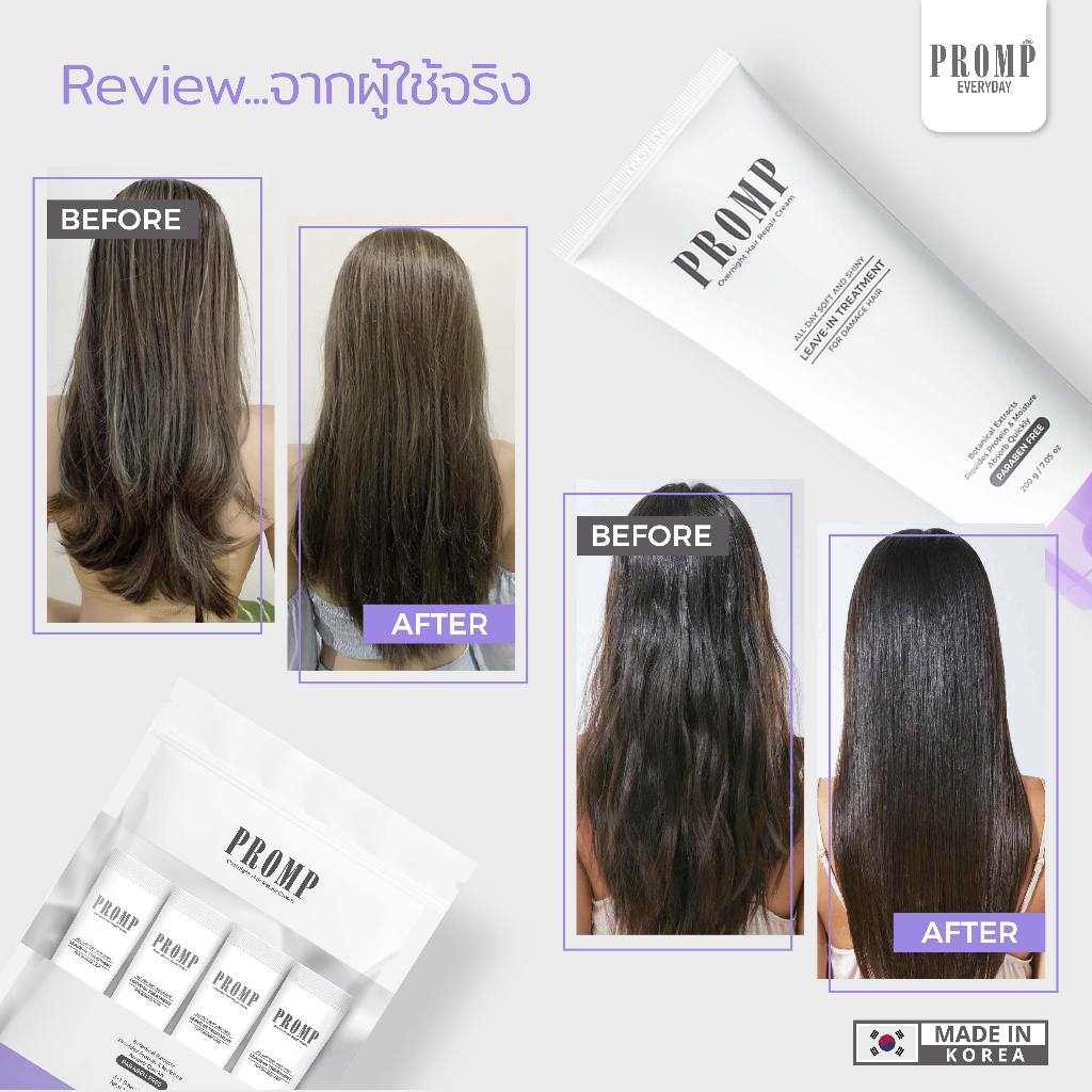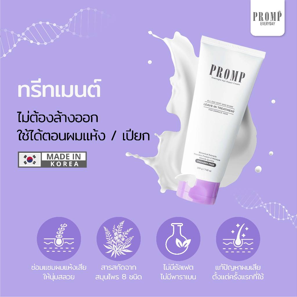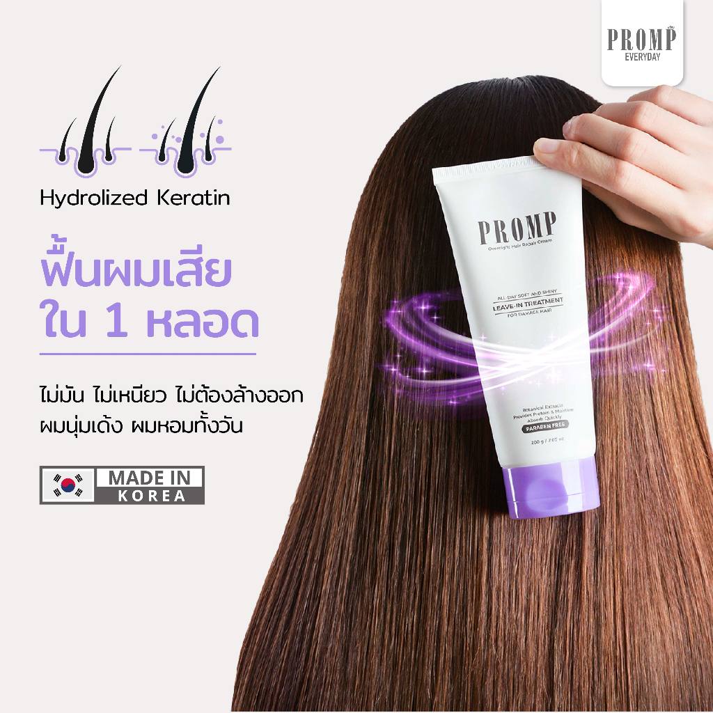 ลดล้างสต๊อก (EXP.09/0/7/2026) อาหารผม PROMP 200ml สูตรเคราตินเข้มข้นถึงแกนผม ฟื้นฟูผมเสีย ลดผมพันกัน ผมแตกปลาย ไม่ต้องล้