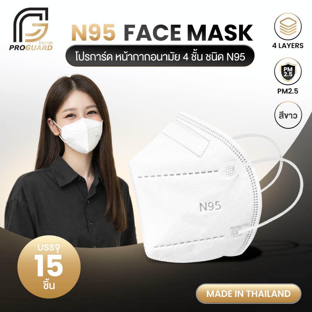 Proguard หน้ากากอนามัย N95 4 ชั้น ชนิดใช้แล้วทิ้ง บรรจุ 15 ชิ้นต่อกล่อง