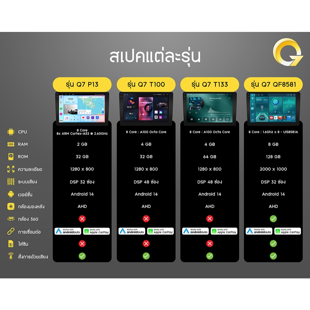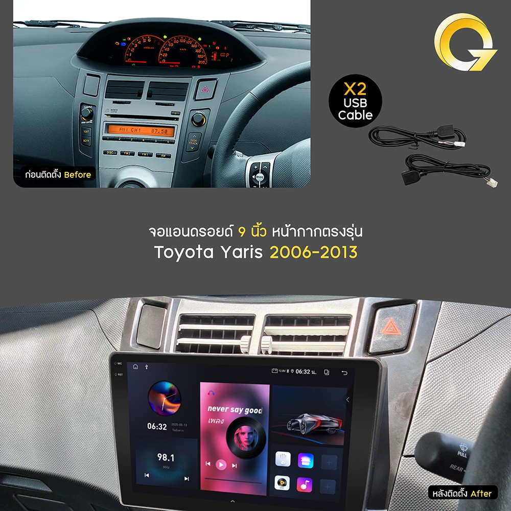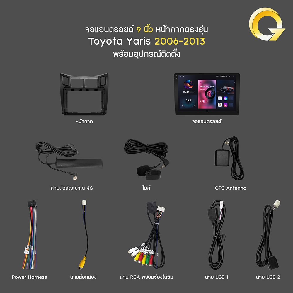 Q7 จอแอนดรอย 9นิ้ว 8CORE TOYOTA YARIS 2006-2013 Android14.0 Apple CarPlay 4G แบ่ง2จอได้ จอตรงรุ่น รองรับกล้อง360°
