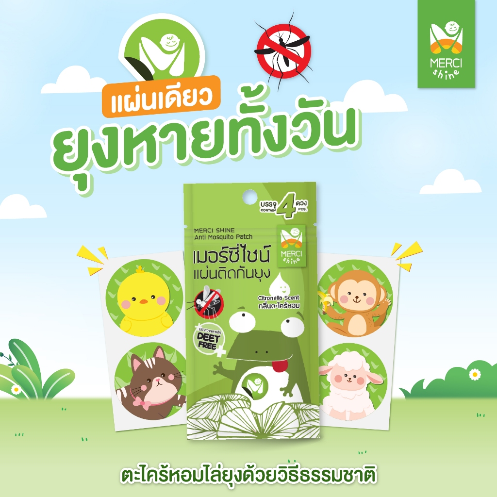 (โปร ซื้อ1แถม1) สติกเกอร์ไล่ยุง 1 กล่อง มี 40 ดวง แผ่นแปะกันยุง ลายการ์ตูน Merci Shine ตะไคร้ไล่ยุง ป้องกันยุง ไล่ยุง