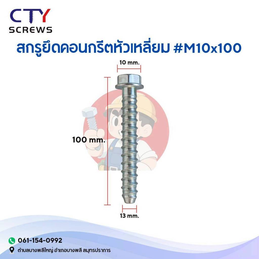 โบลท์ พุกคอนกรีต สกรูยึดคอนกรีต หัวเหลี่ยม (ยึดพื้น ใช้แทนพุกเหล็ก)