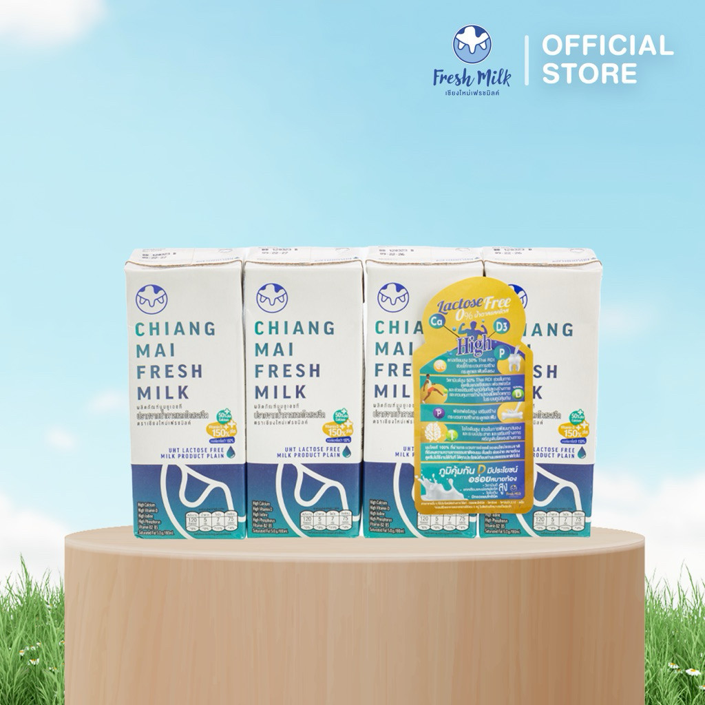 Mall นมเชียงใหม่เฟรชมิลค์ ยกแพ็ค (4กล่อง) 180 ml Lactose Free High Calcium High Vit.D แคลเซียมสูง 50% UHT นมโคแท้100%