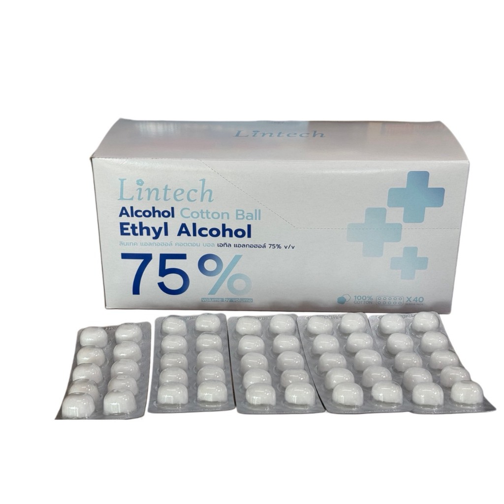 Lintech สำลีก้อนชุบแอลกอฮอล์ แผง 10 ก้อน ยกกล่อง 40 แผง