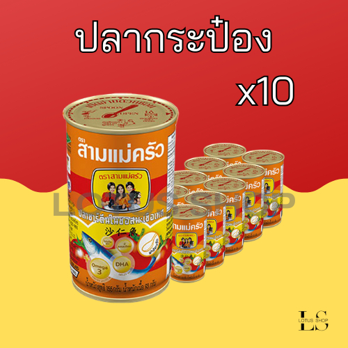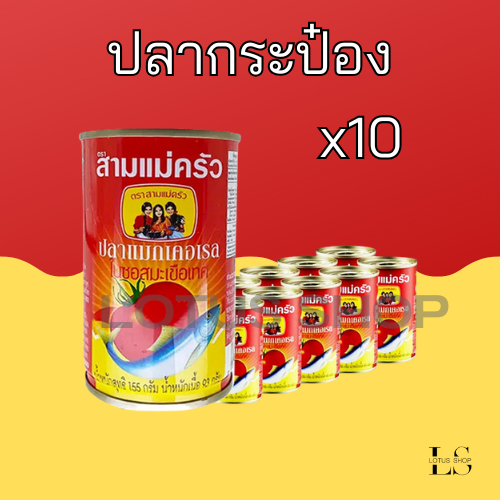 ปลาซาร์ดีนในซอสมะเขือเทศ ตราสามแม่ครัว ขนาด 155 กรัม 35 จำนวน 10 กระป๋อง ฝาดึง , ปลาแม็คเคอเรลในซอสมะเขือเทศ 10 กระป๋อง