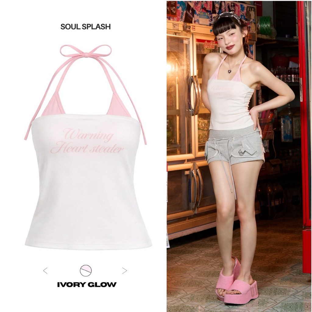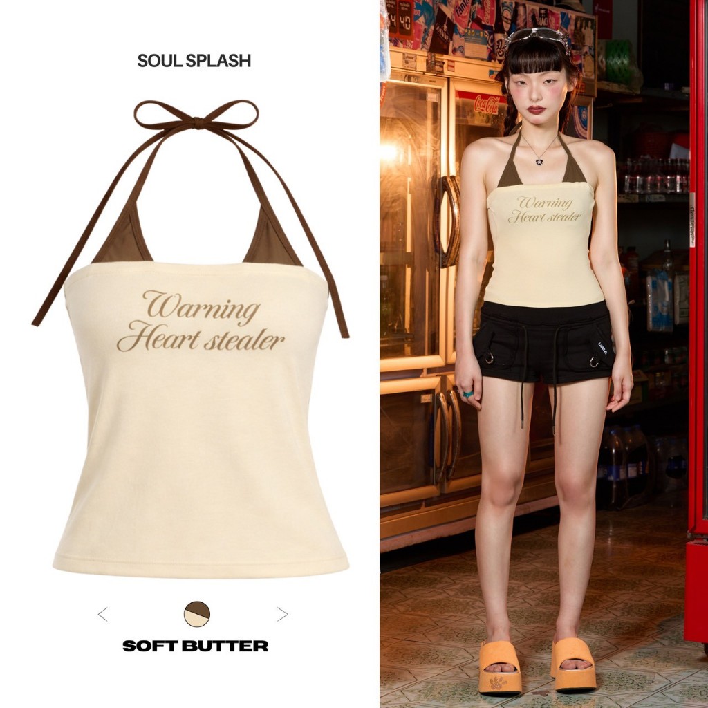 Soul Splash เสื้อคล้องคอ เข้ารูป ผ้าซีทรูบางส่วน ฟรีไซส์