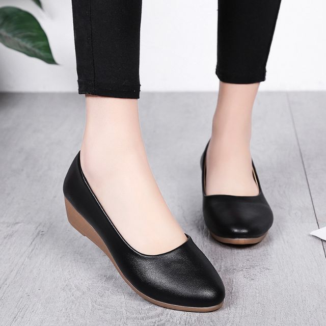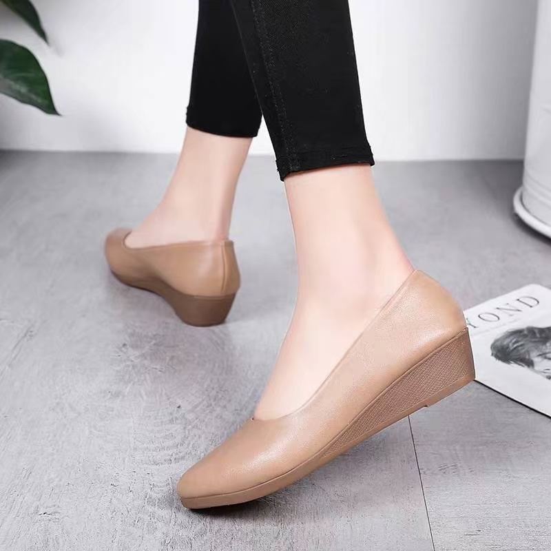 รองเท้าคัชชู ส้นเตารีด สีพื้น พื้นนิ่ม ใส่สบาย สำหรับผู้หญิง H1