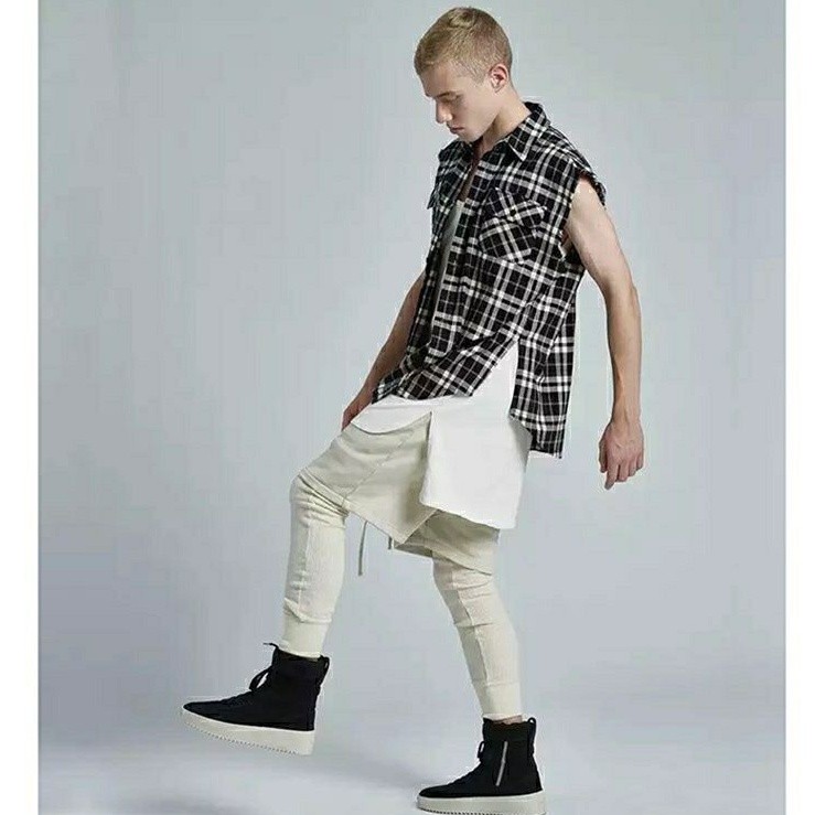 Fog จัสติน bottoming tshirt Justin Bieber hem split FEAR OF GOD multi-line long short-sleeved wild oversize