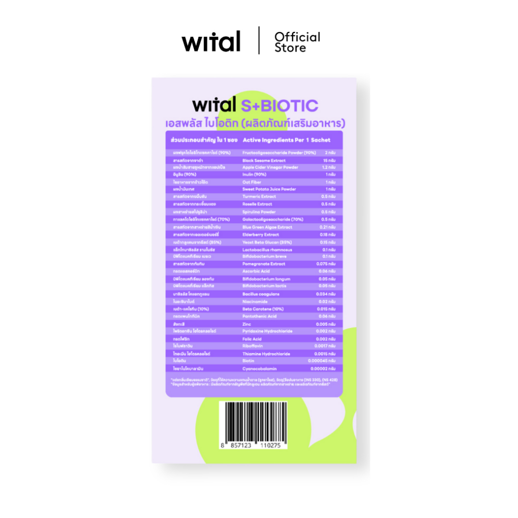[1 ซอง] WITAL S+BIOTIC เจลลี่โพรไบโอติกส์ ปรับสมดุลลำไส้ คุมหิว เสริมระบบภูมิคุ้มกัน