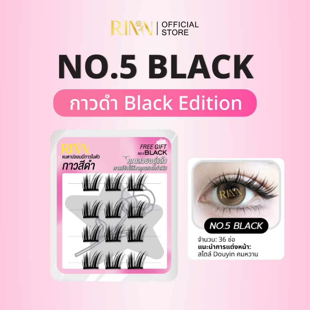 RINN BLACK EDITION ขนตาปลอมมีกาวในตัวกาวดำ เส้นขนตาไมโครไฟเบอร์จากเยอรมนี นุ่ม เบา