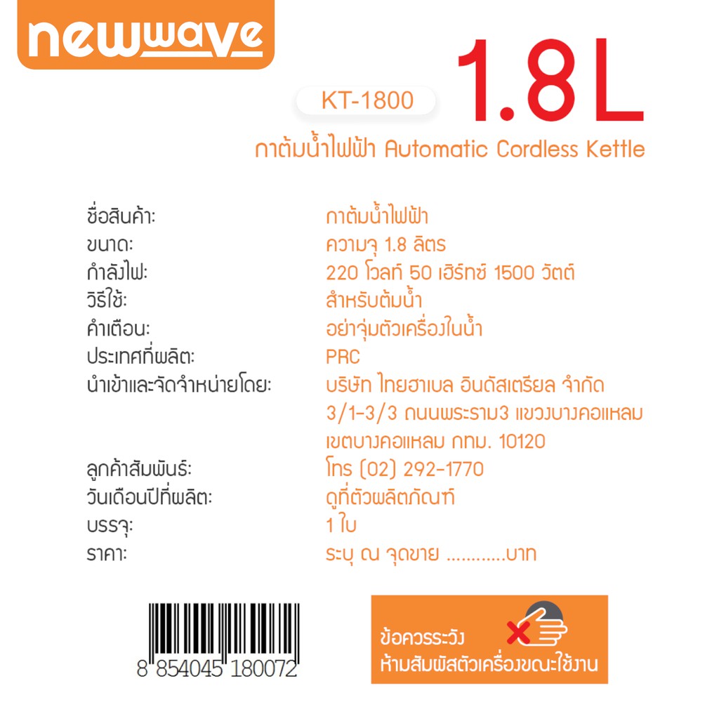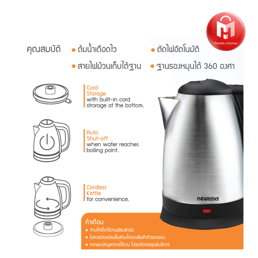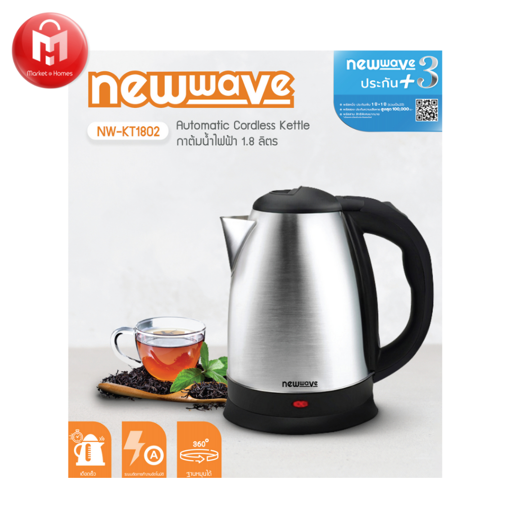 Newwave กาต้มน้ำไฟฟ้าสแตนเลส 1.8 ลิตร Electric Kettle 1.8 L Model : NW-KT1802