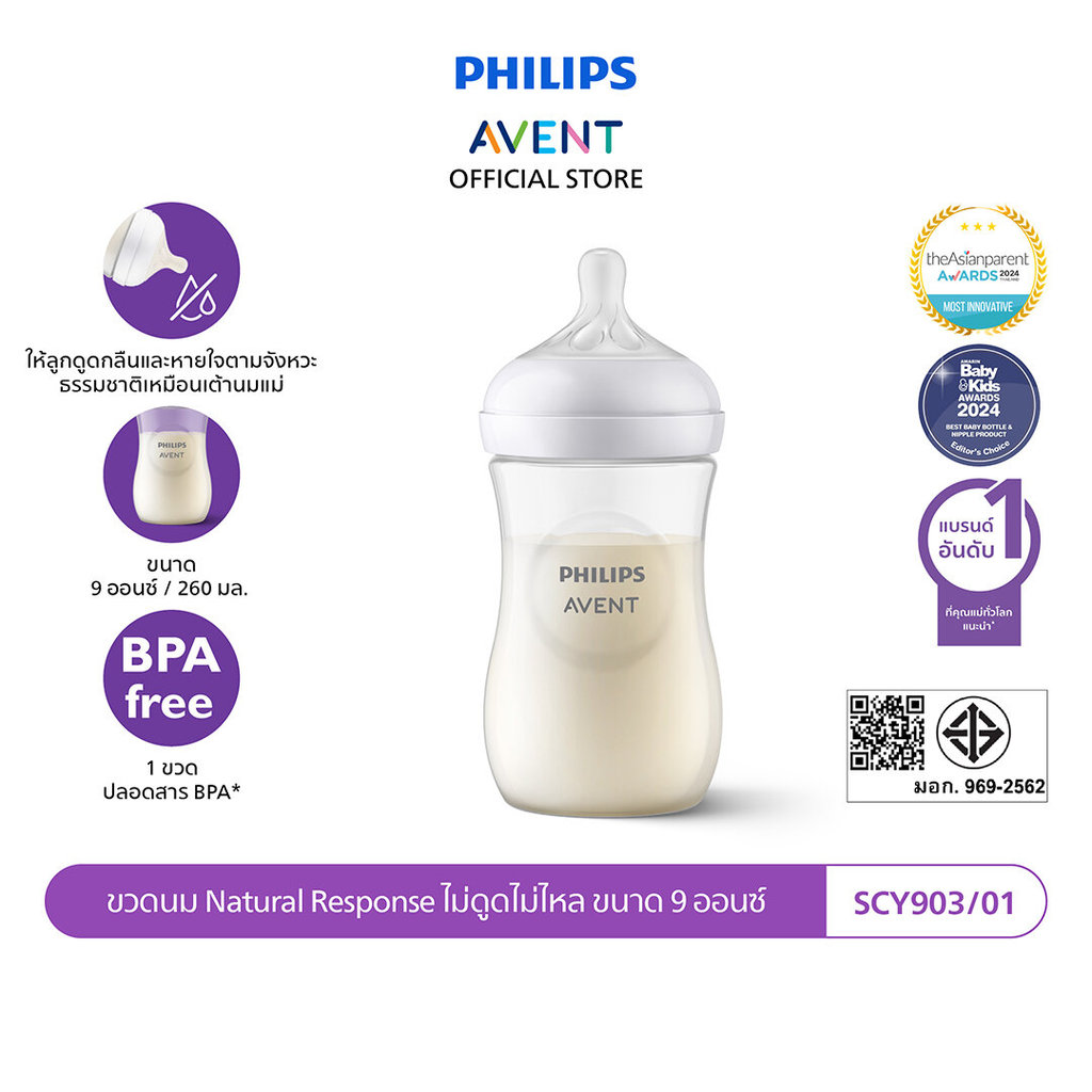 Philips Avent ฟิลิปส์ เอเวนท์ ขวดนม Natural Response ไม่ดูดไม่ไหล ขนาด 9 ออนซ์/260 มล. รุ่น SCY903/01