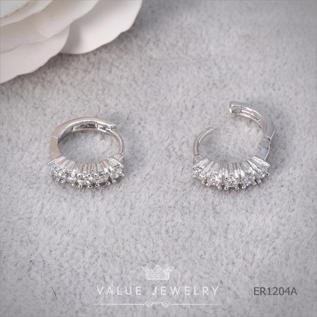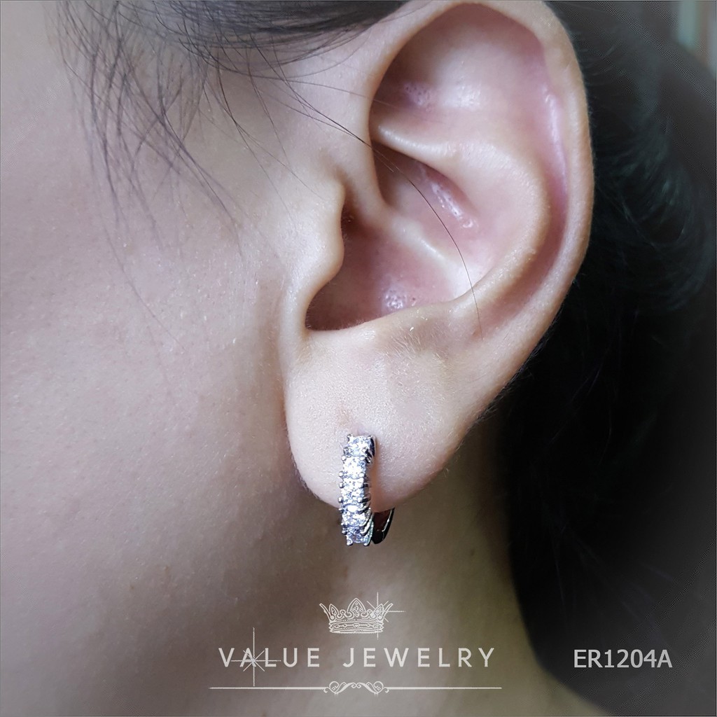 ต่างหูห่วง ฝังคริสตัลเพชรกลม Round Brilliant Shape 1แถว 5เม็ดเรียง ตุ้มหู เครื่องประดับ ER1204 Value Jewelry