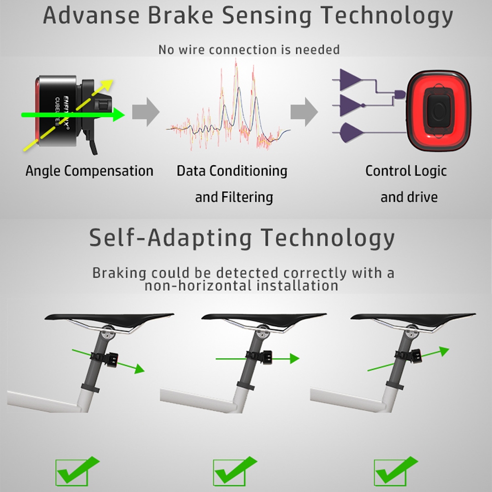 ENFITNIX CUBELITE II สมาร์ทเบรคไฟท้ายจักรยาน Auto Ambient Light Detection USB-C ชาร์จไฟเตือนจักรยาน IPX5 กันน้ํา MBT จักรยานเสือหมอบ Night Ride ขี่จักรยานด้านหลัง