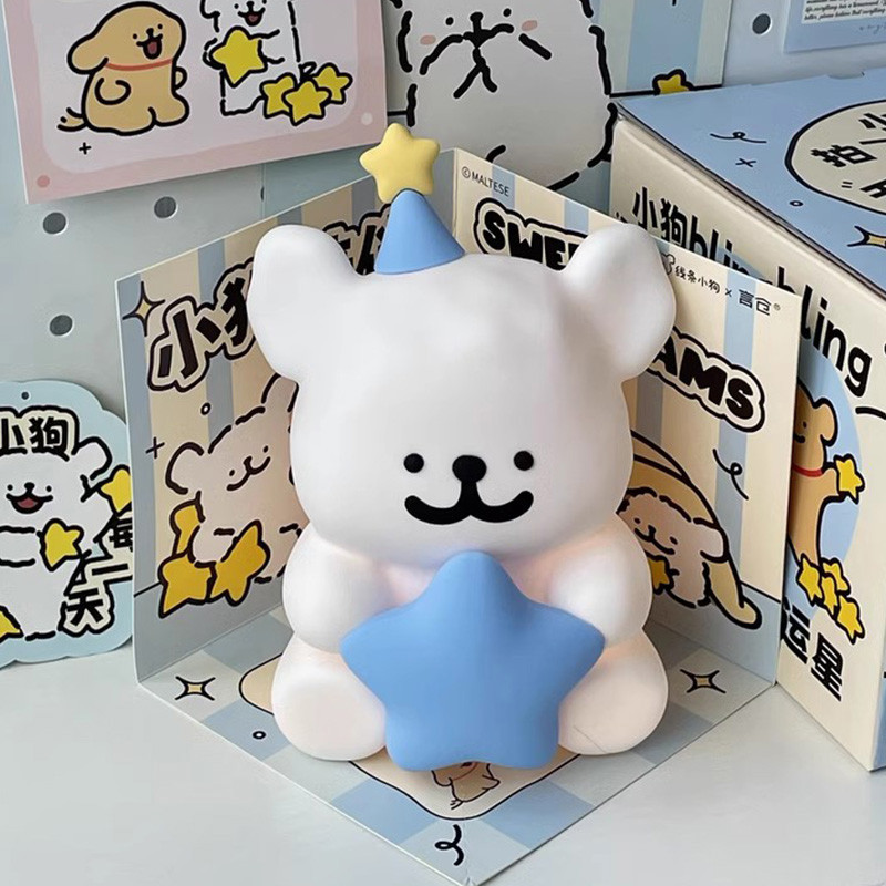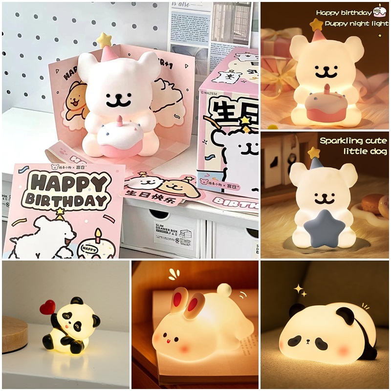 โคมไฟกลางคืนลายเส้นสุนัข โคมไฟเค้กการ์ตูน ของตกแต่งโต๊ะ ของขวัญวันเกิดเพื่อน