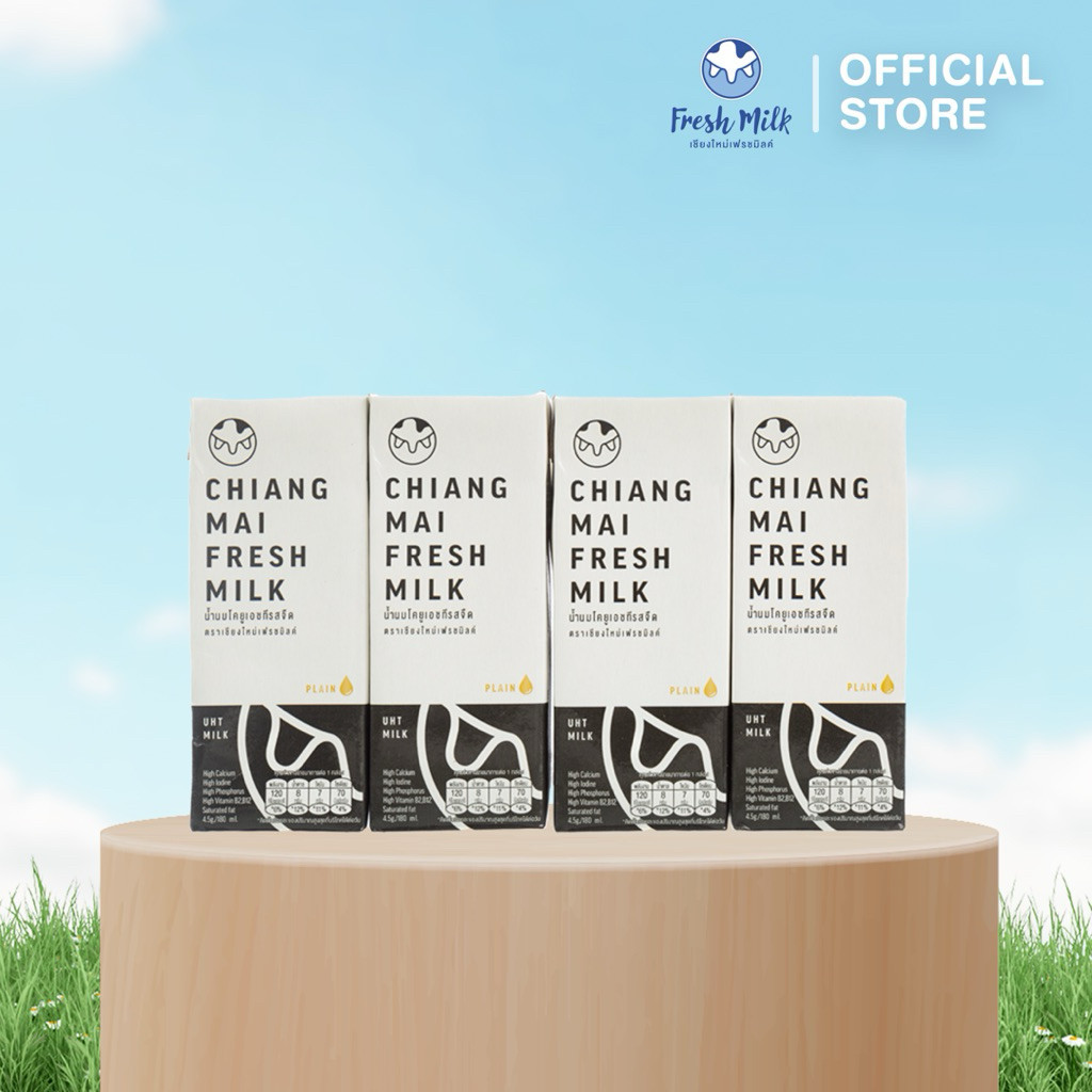 Mall นมเชียงใหม่เฟรชมิลค์ ยกแพ็ค (4กล่อง) 180 ml รสจืด UHT Chiangmai Freshmilk นมโคแท้100%