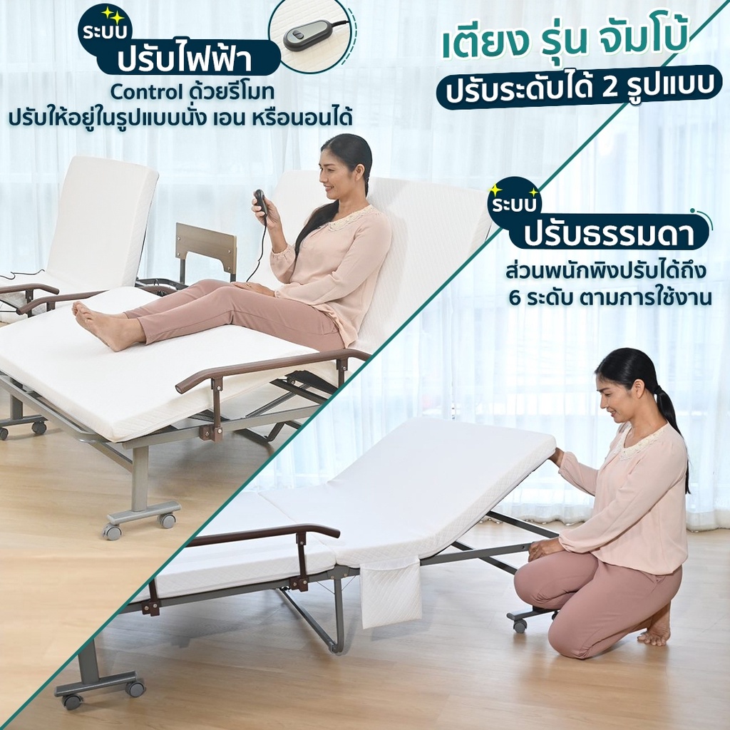 EAZYBED เตียงพับ รุ่น JUMBO มี 2 รุ่น และ 2 ระบบการใช้งาน มีล้อเคลื่อนย้ายง่าย ปรับระดับได้ พร้อมของแถมสุดพิเศษ