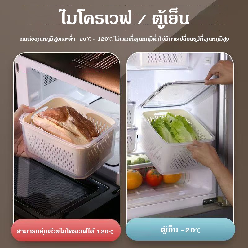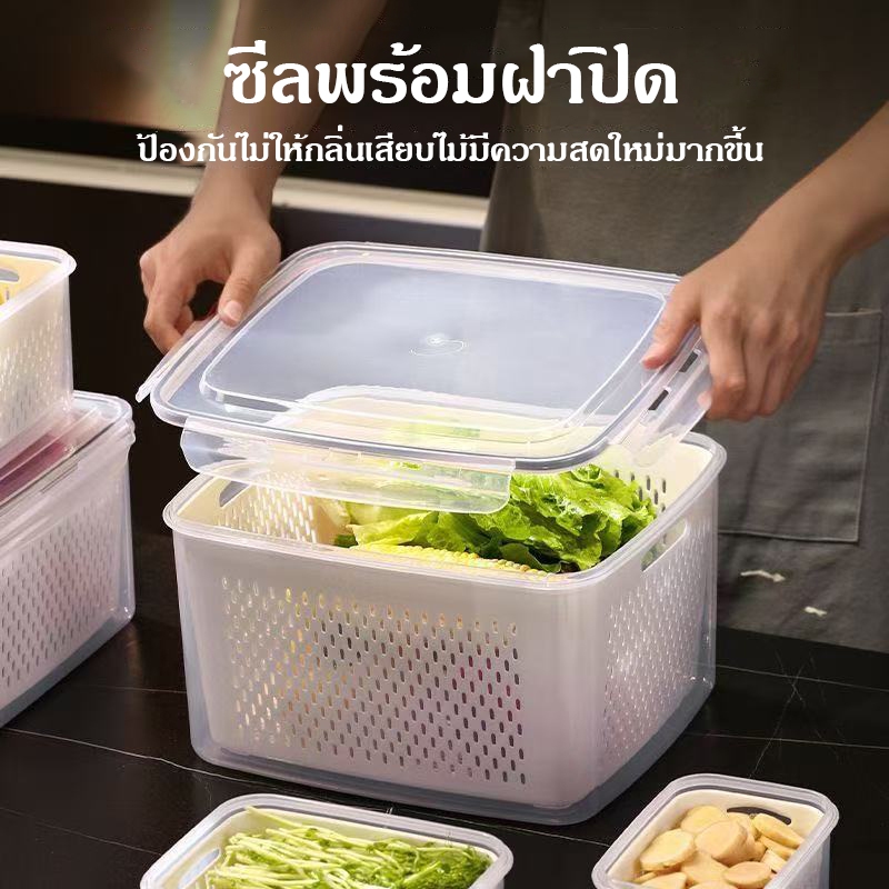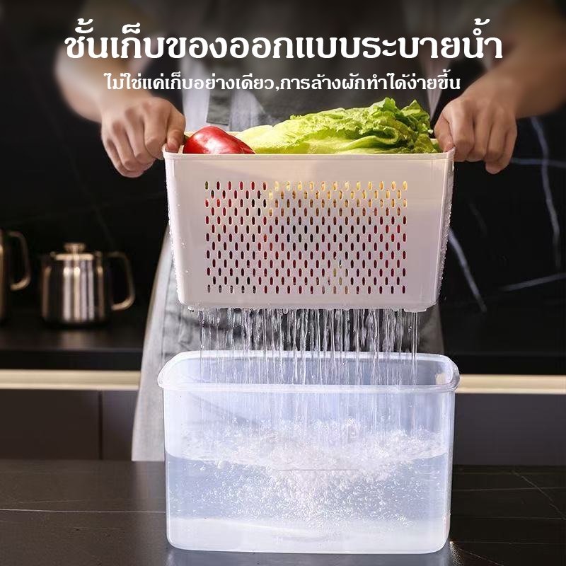 ข้นถอดออกได้ กล่องถนอมอาหารตู้เย็น กล่องเก็บของในตู้เย็น กล่องเก็บเนื้อ ตะแกรงล้างผัก ออกแบบระบายน้ำได้ คงความสดใหม่ของอ