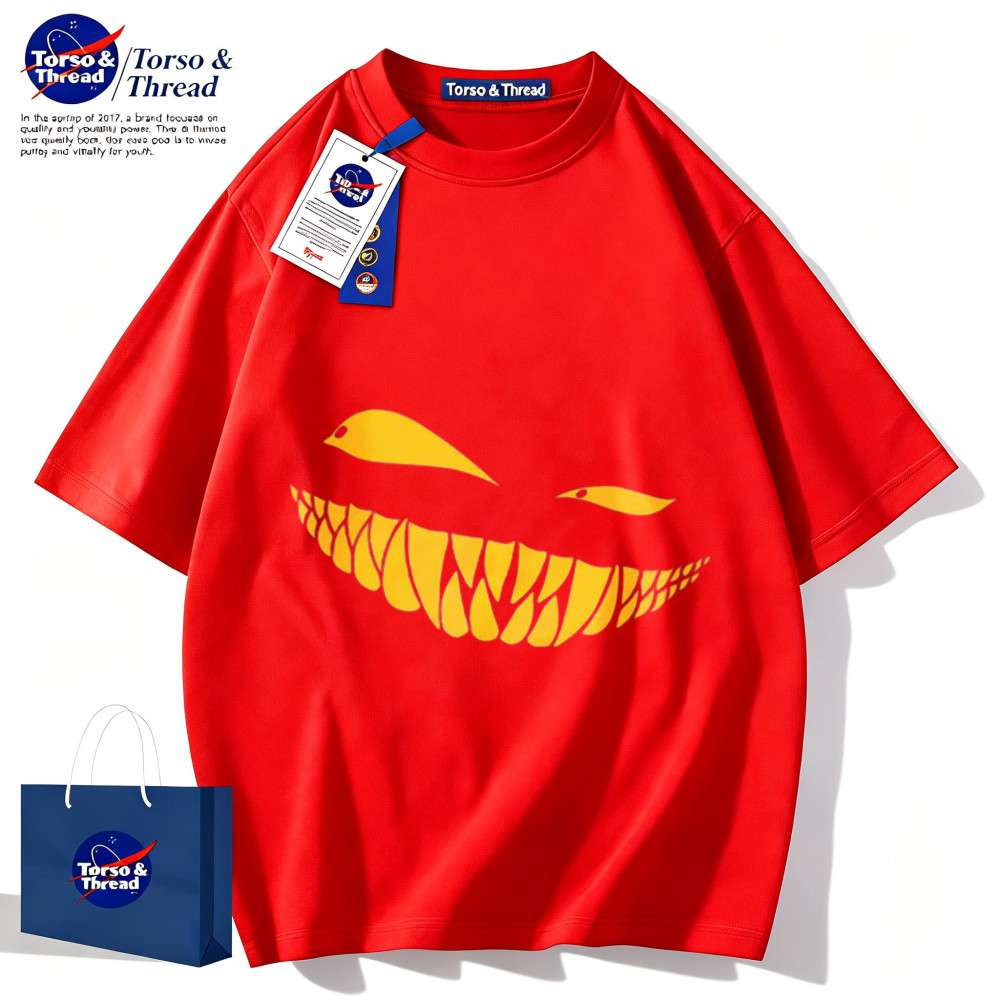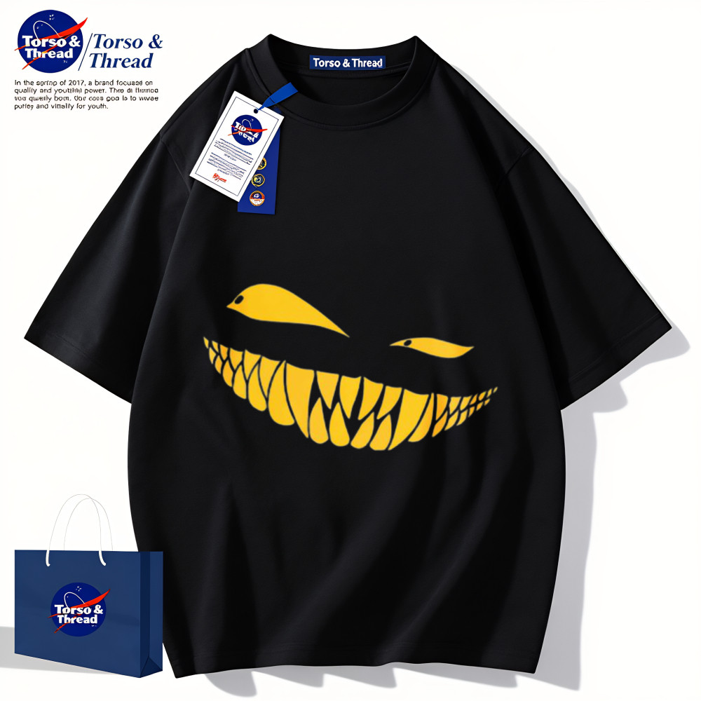 Torso & Thread เสื้อยืดผู้ชายเท่ๆ 100%cotton แฟชั่นเสื้อ summer สบายๆ เสื้อ oversize รูปแบบหน้าตัวยิ้มสีเหลือง