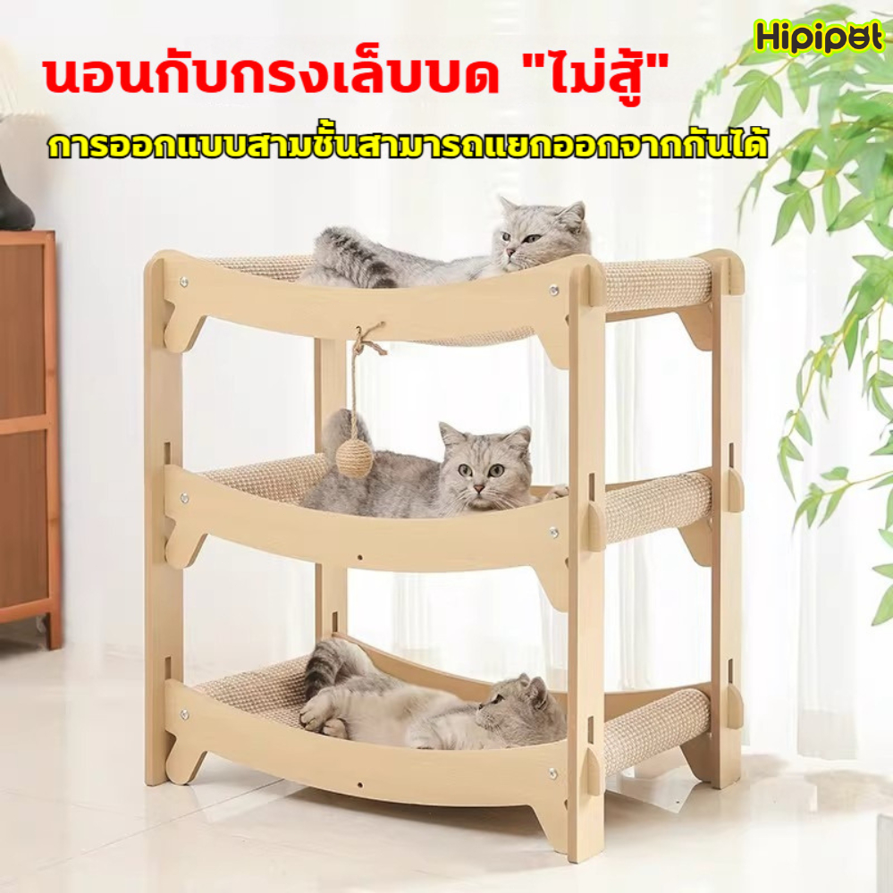 เตียงแมวไม้ คอนโดแมว เตียงแมว เตียงแมวยกระดับ เตียงแมวลับเล็บ 2/3ชั้น ฝนเล็บแมว มัลติแคท สเปซ ทนต่อการขัดถูและรอยขีดข่ว