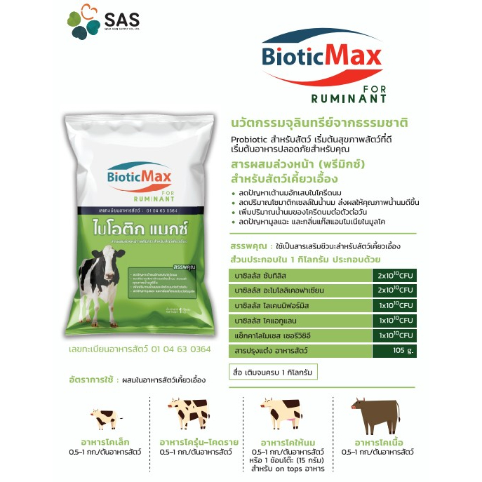 bioCRAFT BioticMax สำหรับสัตว์เคี้ยวเอื้อง (1 กก.) สารผสมอาหารล่วงหน้า (พรีมิกซ์) ผสมจุลินทรีย์