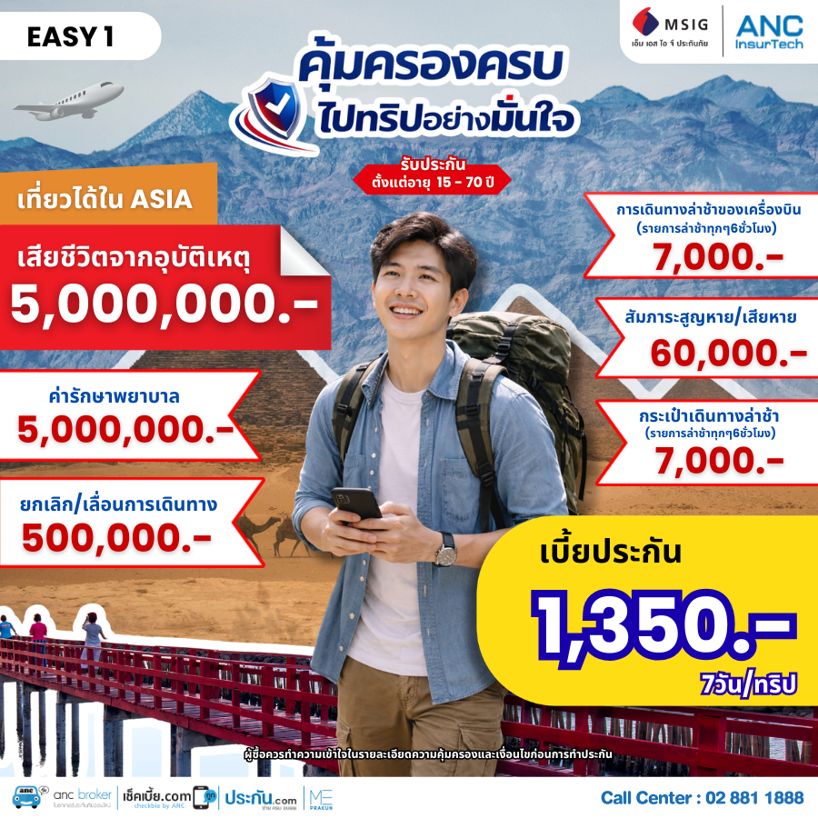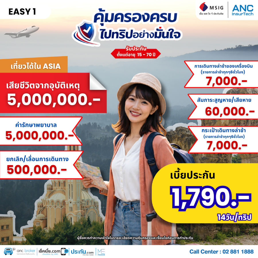 ประกันเดินทางต่างประเทศ MSIG (โซนAsia) คุ้มครองครบไปทริปอย่างมั่นใจ