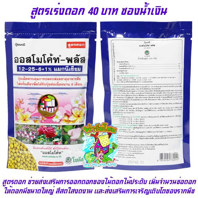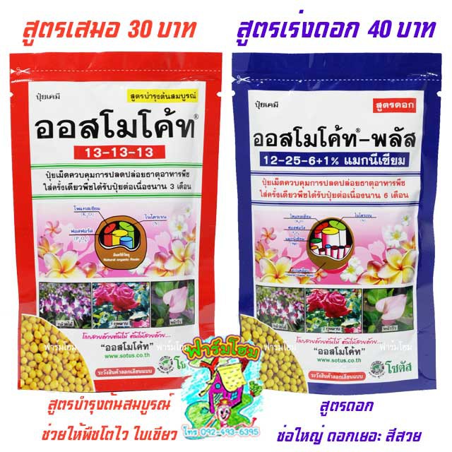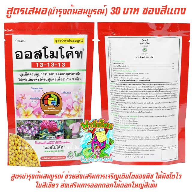 ออสโมโค้ท สูตรบำรุงต้นสมบูรณ์(เสมอ13-13-13):ออสโมโค้ท-พลัสสูตรดอก ปุ๋ยละลายช้าซองโรงงานบรรจุจากบริษัทผู้ผลิตและแบ่งบรรจุ