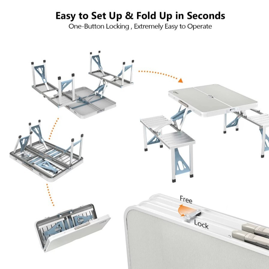 RAREITEM โต๊ะปิกนิกอลูมิเนียมพับได้ 4 ที่นั่ง โต๊ะพับแคมป์ปิ้งพร้อมเก้าอี้ โต๊ะพับพกพา