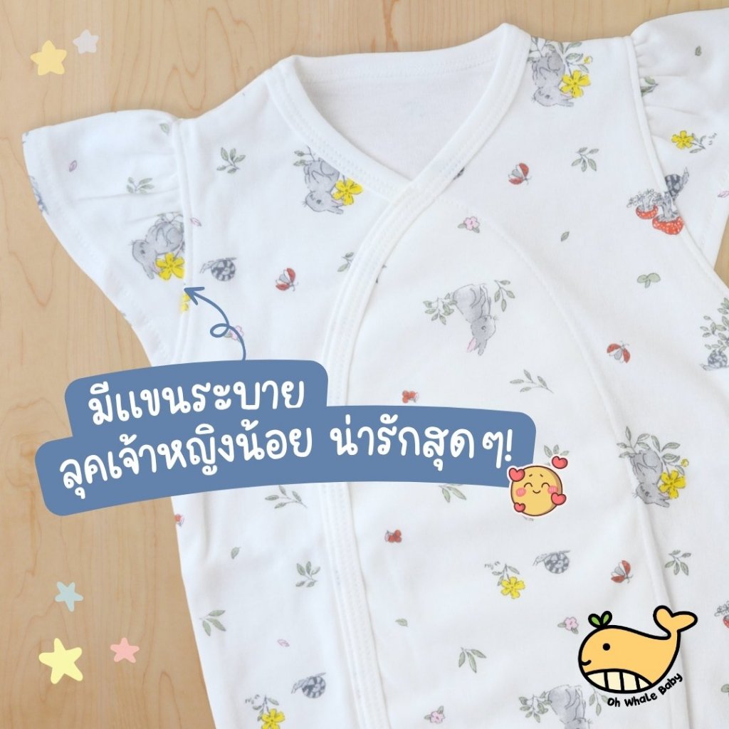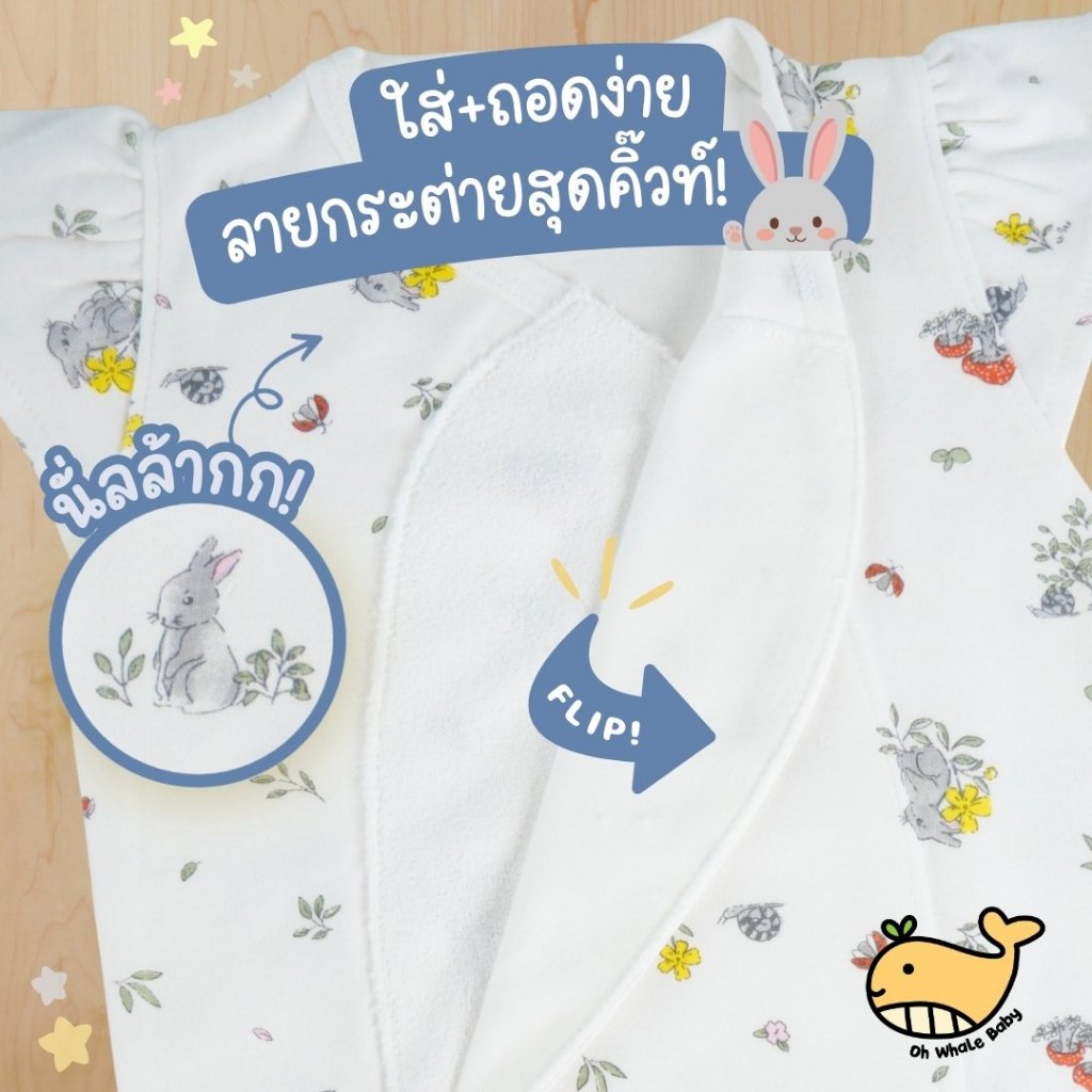 บอดี้สูทเด็กผู้หญิง 0-3 เดือน แขนระบาย ผ้าดูดแกะเงียบ ลายกระต่าย Little Cute นุ่มพรีเมียม มีส่งด่วน