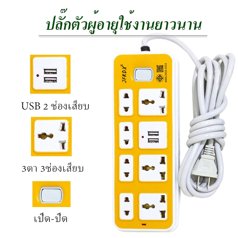 ปลั๊กไฟ 7 กำลังไฟ 2300W ปลั๊กพ่วง ปลั๊กไฟ usb ปลั๊กชาร์จ สายยาว 3 เมตร 5เมตร 8เมตร