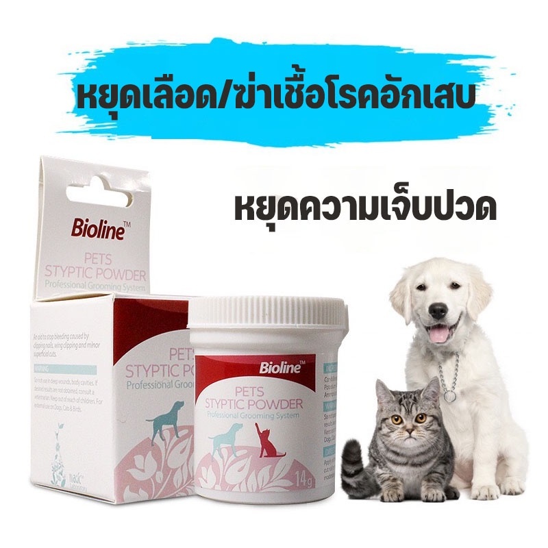 ผงหยุดเลือด Bioline สำหรับสัตว์เลี้ยง 14g ห้ามเลือดเร็ว ไม่แสบแผล ใช้กับเล็บตัดเกิน