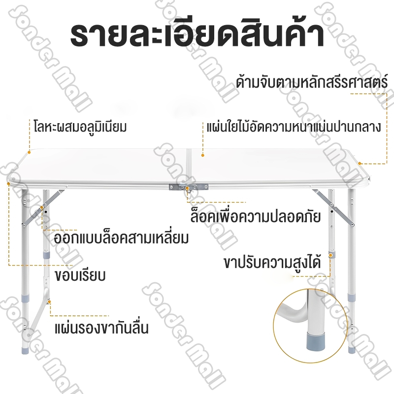 Sonder โต๊ะพับอเนกประสงค์ โต๊ะพับพกพา ขนาด120x60cm พับเก็บง่าย พกพาสะดวก ใช้ขายของตลาดนัด และกิจกรรมกลางแจ้ง