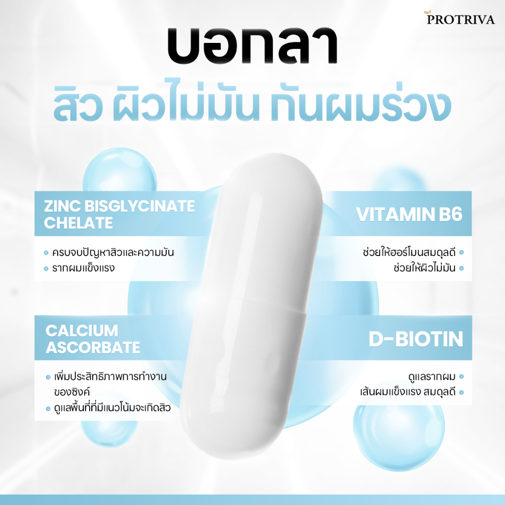 [ใหม่ 1แถม1] Protriva Zinc Bisglycinate Plus โปรทริว่า ซิงค์ บิสไกลซีเนต พลัส สิว คุมมัน เล็บ ผม