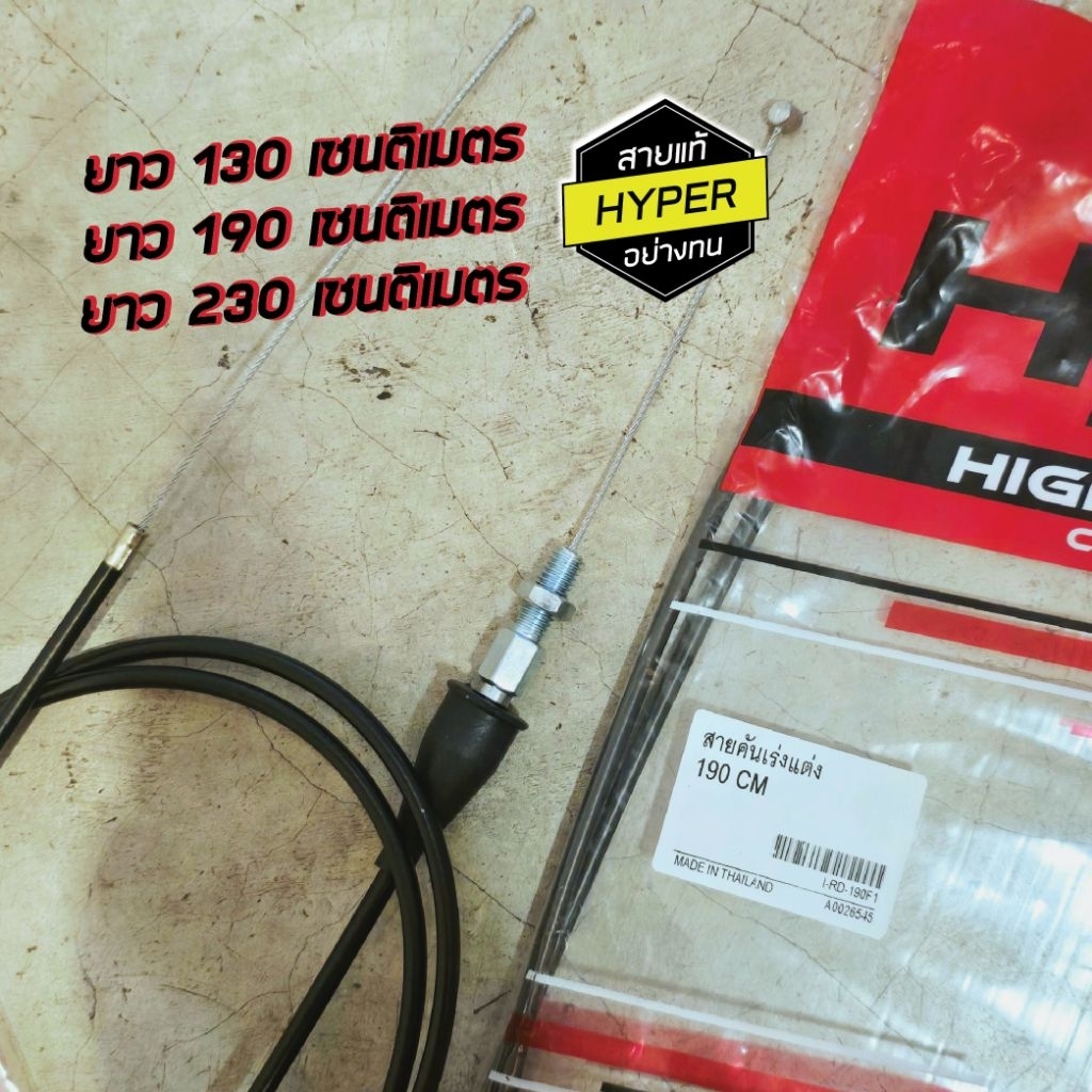 สายคันเร่ง สายเร่งแต่ง ยาวพิเศษ สำหรับมอเตอร์ไซค์ มี 130 190 230 ซม. ยี่ห้อ HYPER อย่างทน เกรดแท้ ของคนไทย