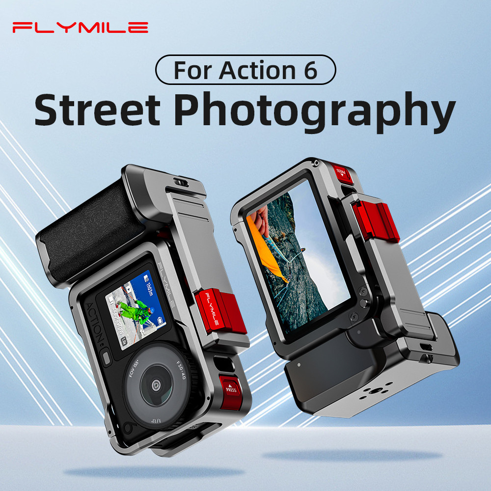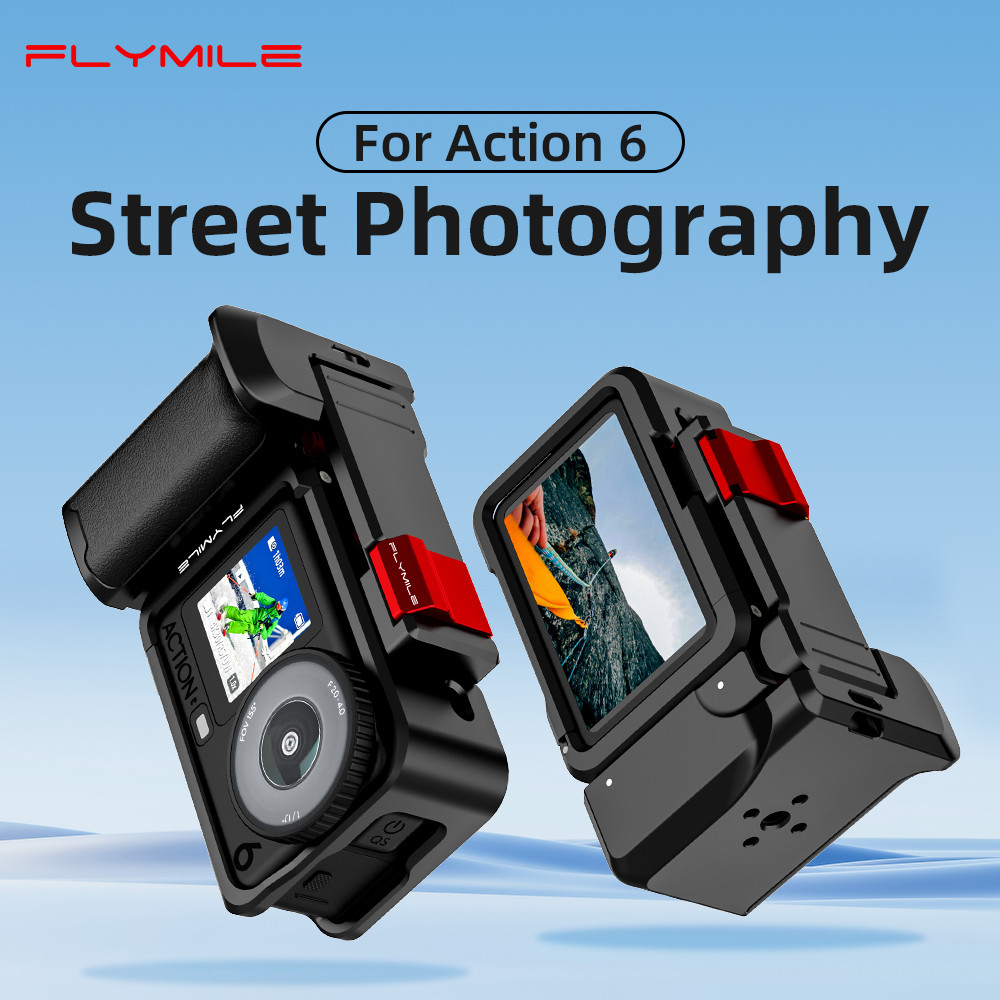 กริปโลหะ Flymile สําหรับ DJI Osmo Action 6, ด้ามจับ Xplorer สําหรับ Vlogging, แนวนอน/แนวตั้ง