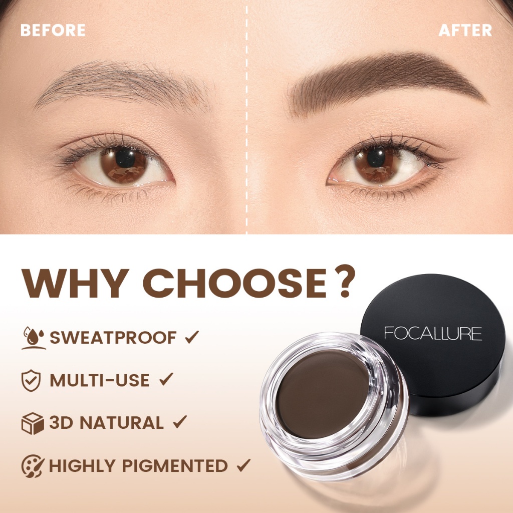 FOCALLURE Pro-shape Duo Eyebrow Cream 3D Full Sculpted Fluffy Feathery Fill Fix Lasting Instant จัดแต่งทรงผมเม็ดสีสูง Multi-ใช้ Non-cakey Quick-dry กันน้ํา Smudge-proof FA-23