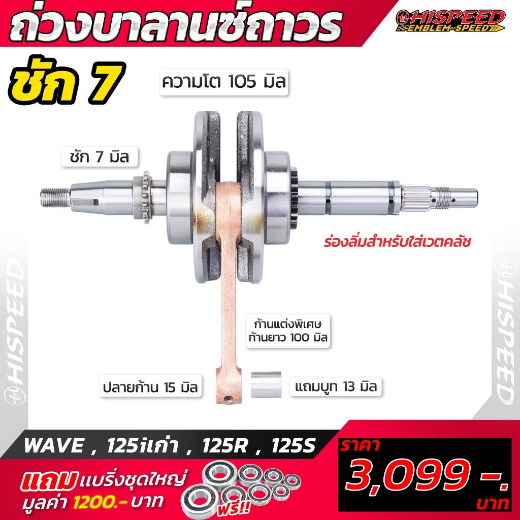 ข้อเหวี่ยงแต่ง WAVE125 STD(ชักเดิม) ,ชัก 3-5-7-9-10-12 มม. | WAVE125R/S,Dream125,WAVE125-i (บังลม)