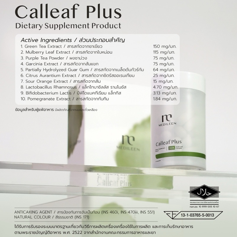 Calleaf Plus Medileen แคลลีฟพลัส (ของแท้ ล็อตใหม่) อาหารเสริมช่วยดูแลรูปร่างและสุขภาพ