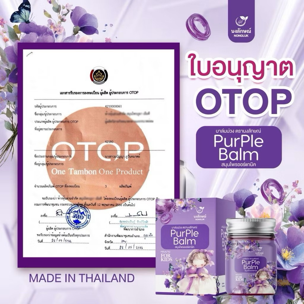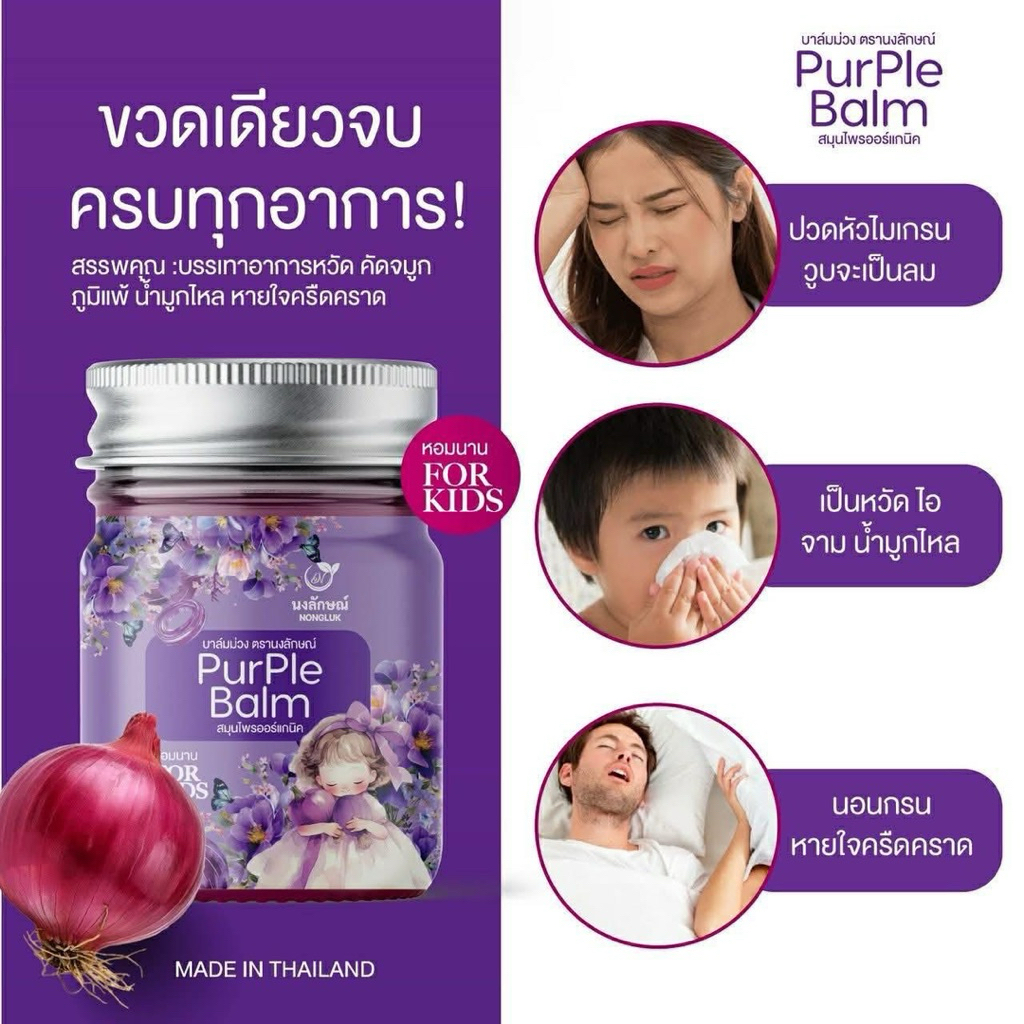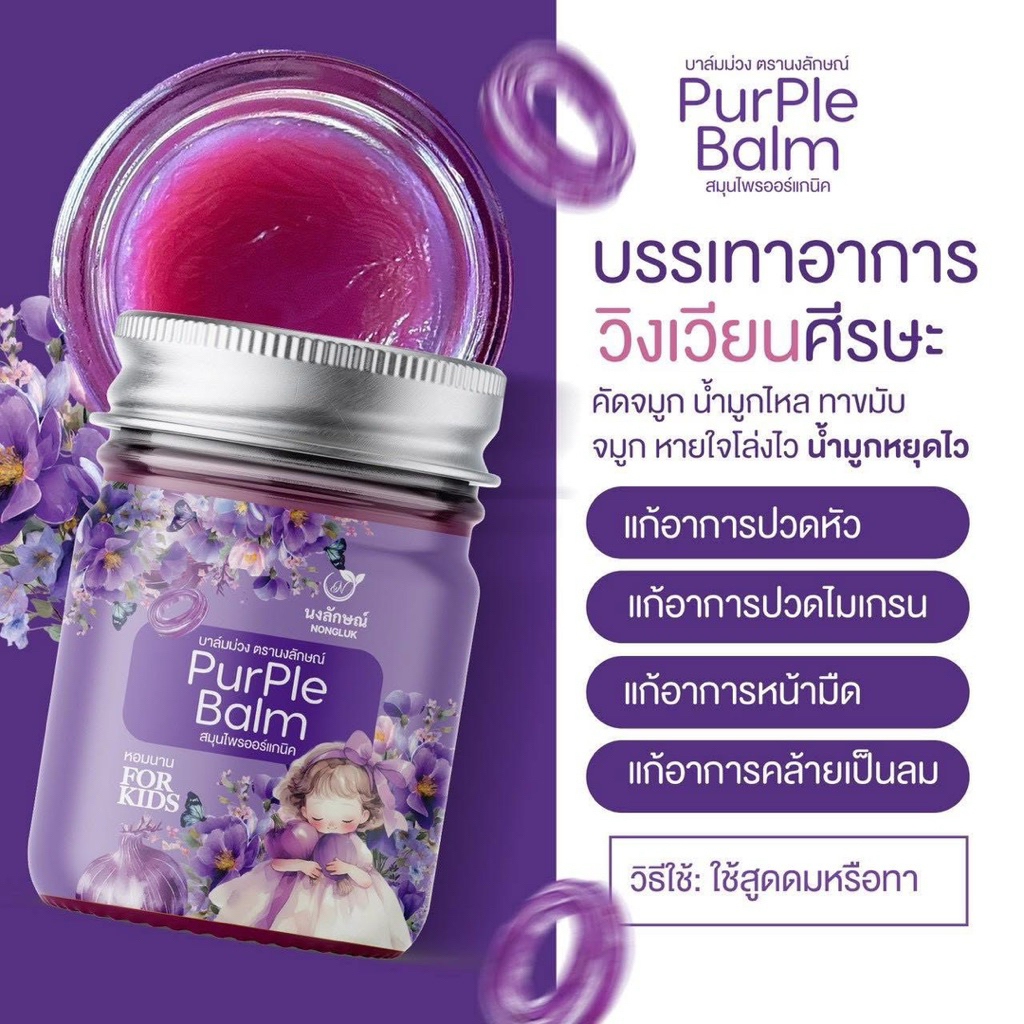 [แท้] บาล์มม่วง นงลักษณ์ สดชื่น หายใจสะดวก กลิ่นหอมจากธรรมชาติ