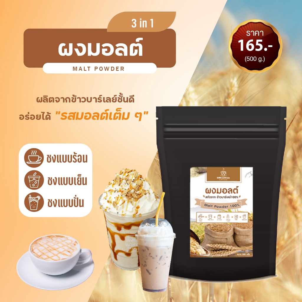 ผงนมมอลต์ 3in1 ผงมอลต์ สกัดจากข้าวบาร์เลย์ชั้นดี หอมนุ่ม อร่อย ได้รสมอลต์ 500 g. พร้อมส่ง!!