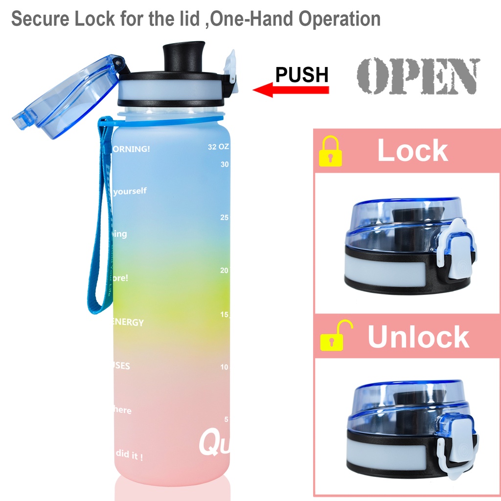 Quifit ขวดน้ํำ 1 ลิตร พร้อมตัวบอกเวลา ปลอดสาร BPA สําหรับเล่นกีฬา