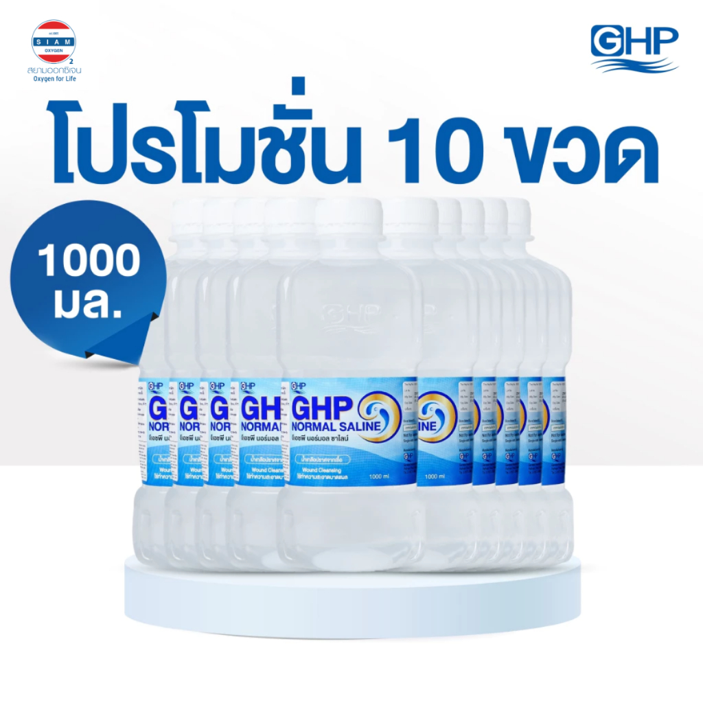 [โปร 10 ขวด] ขนาด 1000 ml.น้ำเกลือ GHP NORMAL SALINE ขวดดัมเบล