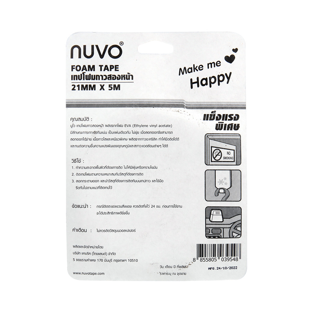 เทปโฟม NUVO รุ่น 915 ขนาด 21 มม. x 5 ม. สีเขียว