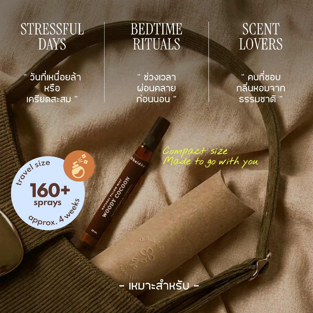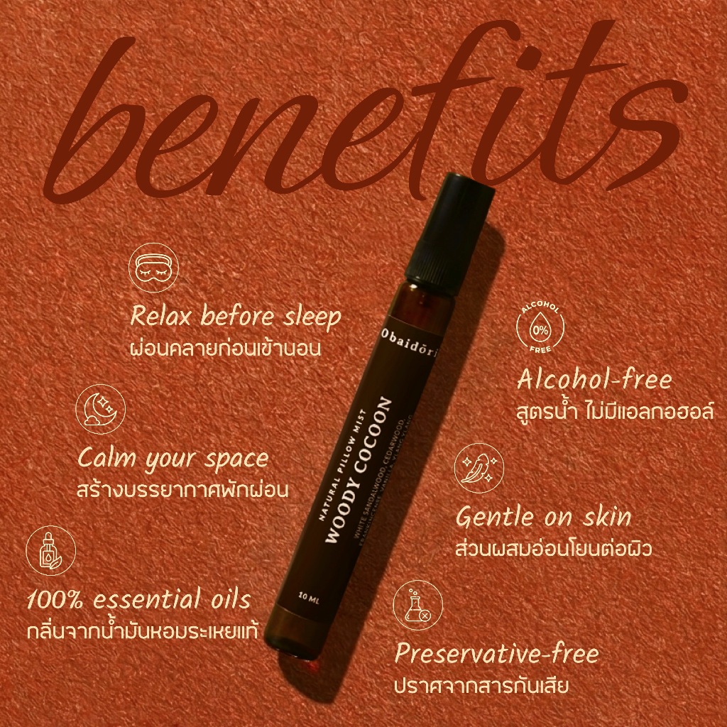 (Set 3กลิ่น) OBAIDORI Natural Pillow Mist สเปรย์ฉีดหมอน ช่วยนอนหลับ ลดความเครียด น้ำมันหอมระเหยธรรมชาติ สูตรไร้แอลกอฮอล์