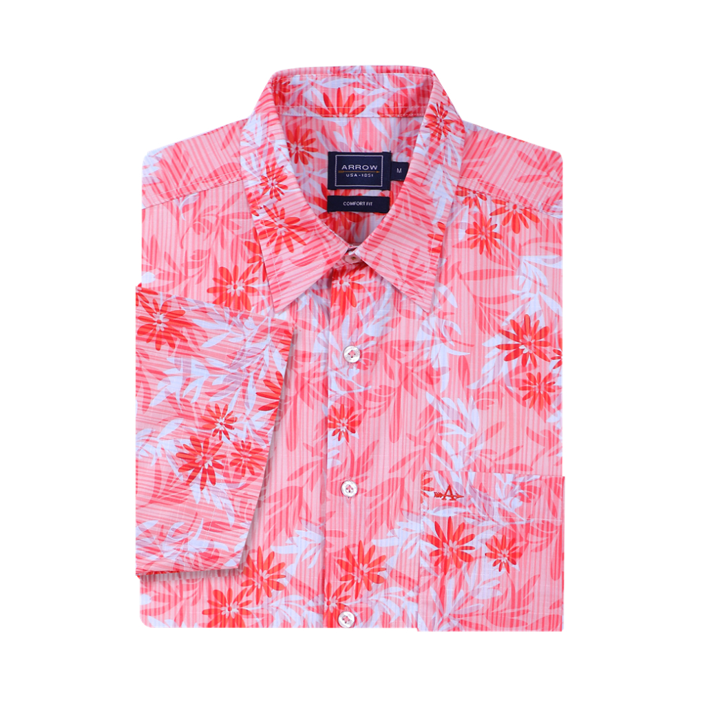 ARROW Natural Fabric เสื้อเชิ้ตผู้ชาย แขนสั้น ทรง Comfort ผ้า 100% Cotton ลายพิมพ์ สีแดง รุ่น MACC465-RE
